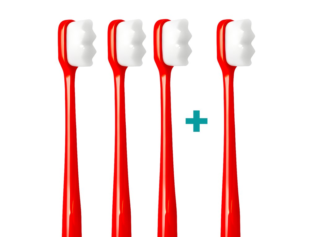 Pořiďte si výhodný set čtyř ultrajemných kartáčků Nanosmile Red pro celou rodinu. Zaplatíte 3 a 1 dostanete úplně zdarma.