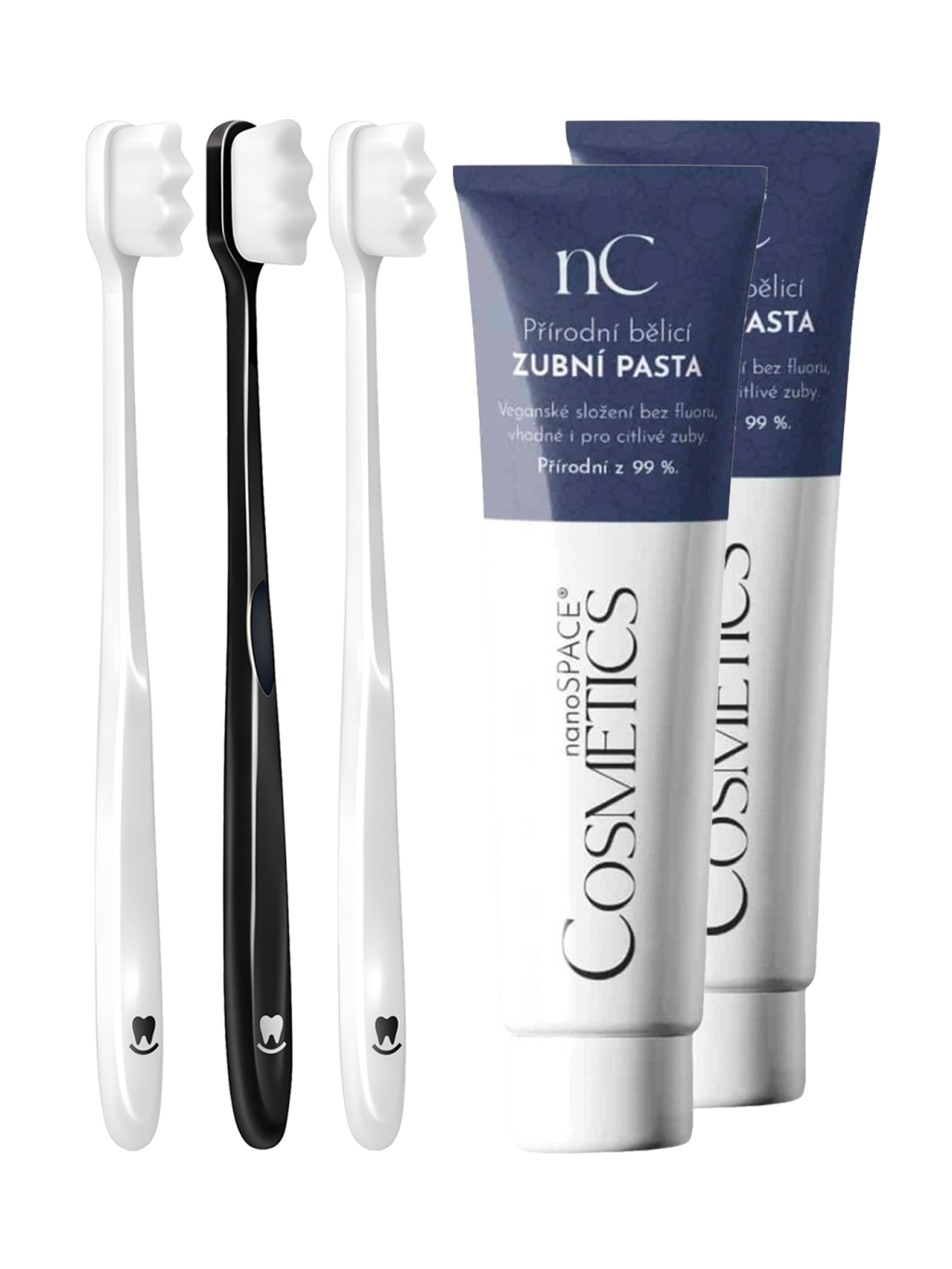 Trio ultrajemný zubní kartáček Nanosmile & Duo Pack Přírodní bělicí zubní pasta Nanospace